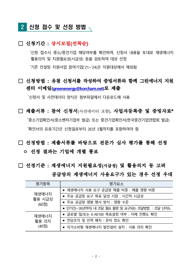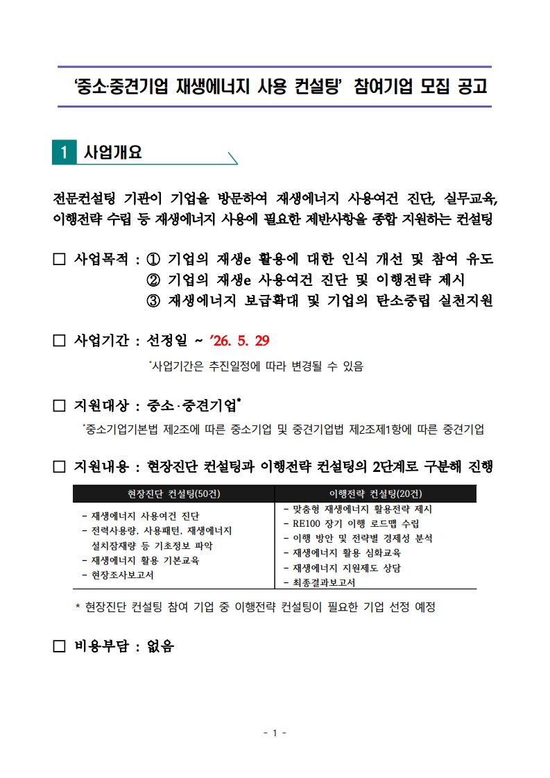 ‒ | 중소·중견기업 재생에너지 사용 컨설팅 참여기업 모집 공고 |