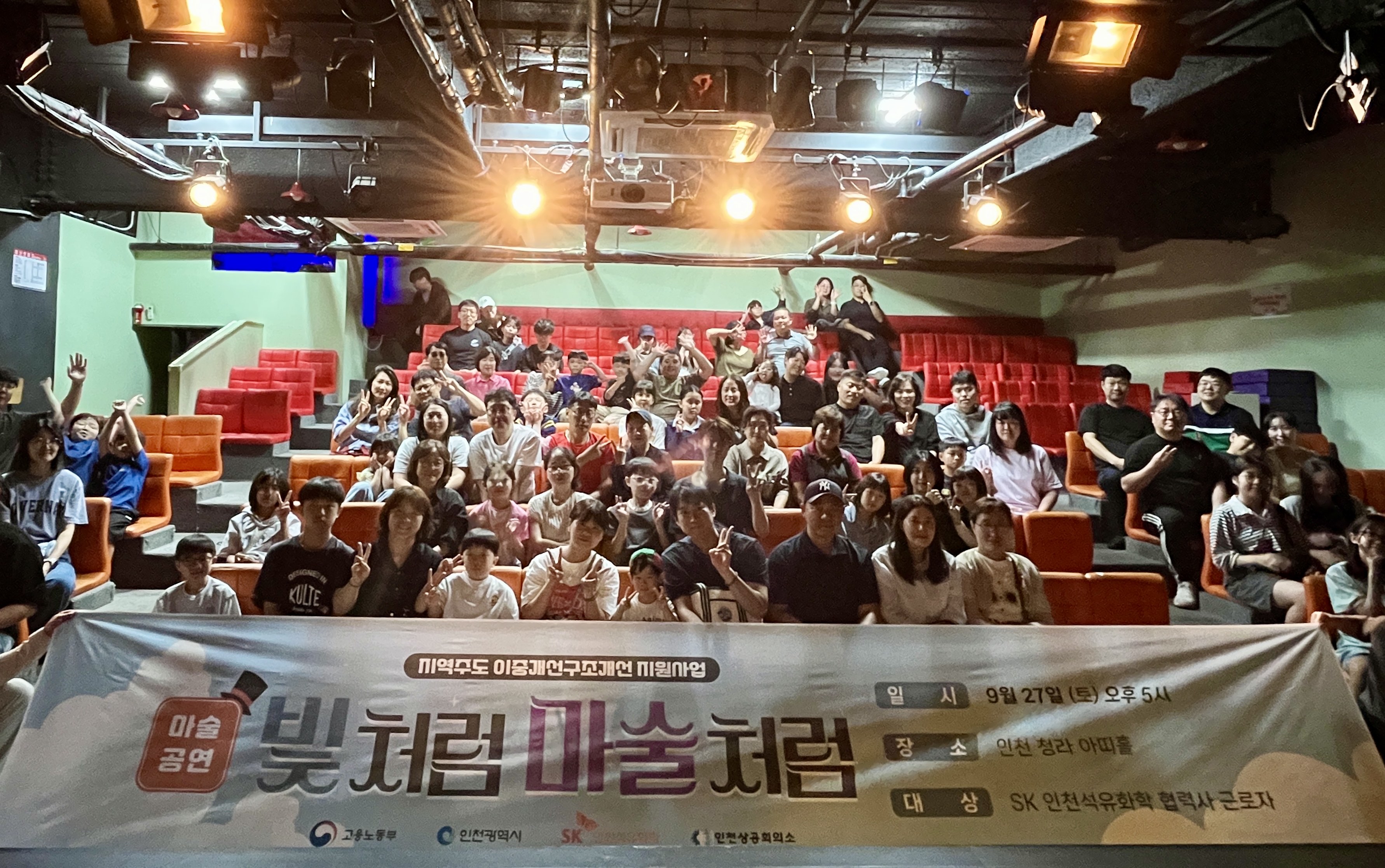 지난 27일 고용노동부와 인천광역시가 공동으로 추진 중인 ‘지역주도 이중구조개선 지원사업’의 일환으로, 인천 서구에 위치한 아띠홀에서 SK인천석유화학 협력사 근로자 및 그 가족을 위한 특별한 문화행사가 성공적으로 개최됐다. 이번 행사는 근로자들에게 일상에서 벗어나 가족과 함께 즐길 수 있는 이색적인 여가 시간을 제공하고자 마련되었으며, 기존의 일반적인 문화체험 프로그램과 차별화된 마술 공연으로 진행되어 큰 호응을 얻었다. 행사에는 근로자 및 그 가족 등 약 100여 명이 참석해 다채로운 공연과 이벤트를 함께 즐겼다. 화려한 무대 연출과 눈을 뗄 수 없는 퍼포먼스로 구성된 마술 공연은 어린이부터 성인까지 전 세대가 함께 즐길 수 있도록 기획되었으며, 참석자들에게 특별한 추억을 선사했다. 이날 현장에는 간식과 기념품이 함께 제공되어 따뜻한 환대 속에 행사가 진행되었으며, 참여자들은 공연 관람과 함께 소통과 휴식을 즐기며 뜻깊은 시간을 보냈다. 이번 문화행사는 SK인천석유화학 협력사 근로자들의 문화 복지를 통한 삶의 질 향상과 일과 삶의 균형 실현을 목표로 기획됐으며, 10월 원데이클래스, 11월 영화/드라마 OST등으로 구성된 연주회 등 다양한 형태의 문화 프로그램으로 확대 운영될 예정이다. 행사를 주관한 인천상공회의소 함지현 소통강화공공사업실장은 “근로자와 가족이 함께 즐길 수 있는 특별한 문화행사를 통해, 단순한 여가 제공을 넘어 정서적 힐링과 가족 간 유대 강화라는 긍정적인 효과를 확인할 수 있었다”며, “앞으로도 근로자의 일상에 활력을 더할 수 있는 창의적이고 다양성 있는 문화 프로그램을 지속적으로 기획해 나갈 계획”이라고 밝혔다. 별첨 : 사진 1매. 끝. (사진설명) 지난 27일 인천 서구에 위치한 아띠홀에서 SK인천석유화학 협력사 근로자 및 가족들이 마술공연을 관람하며, 특별한 하루를 기념하고 있다.