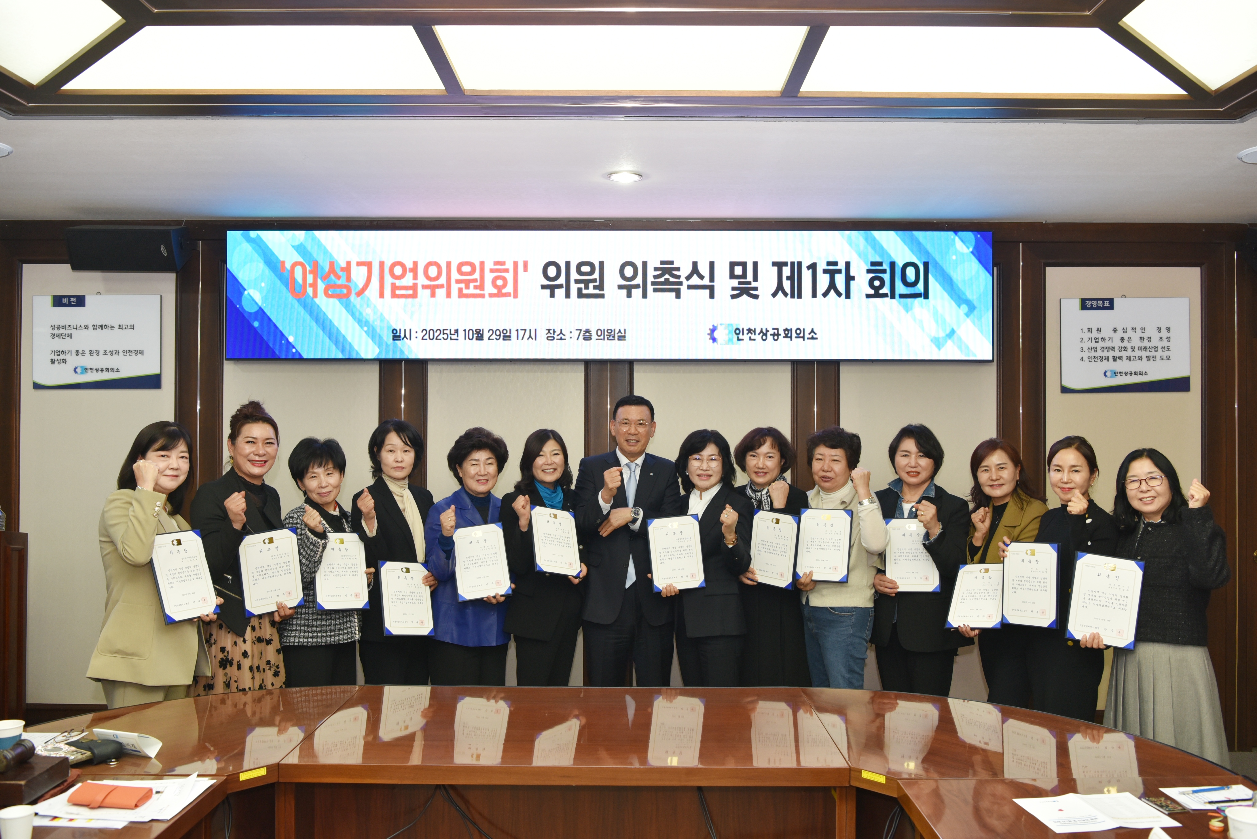 인천상공회의소(회장 박주봉)는 지난 29일 17시, 7층 의원실에서 ‘인천상공회의소 여성기업위원회’(이하 ‘위원회’) 위원 위촉식 및 제1차 회의를 개최했다. 위원회는 여성 중소기업의 꾸준한 증가와 지역내 여성기업의 역할 확대에 발맞춰, 여성 기업인의 경영환경 개선과 권익 향상을 위한 실질적인 지원과 협력 기반을 마련하고자 지난 8월 12일 발족 이후, 이날 위원들이 한 자리에 모인 가운데 위촉장 전달과 본격적인 활동 전개를 위한 결의를 다졌다. 또한, 이날 회의에서는 지역내 활발히 경영 활동을 펼치고 있는 16여개 업체의 여성 대표들이 위원으로 위촉이 됐다. 박주봉 인천상의 회장은 환영사를 통해 “그동안 인천지역 여성기업은 초기 창업 기업과 소상공업 중심의 구조로 인해 기업의 안정성과 성장 기반이 취약하다는 문제의식이 꾸준히 제기되어 왔다.”면서, “여성기업인의 참여 확대는 인천 경제의 지속가능한 성장에 있어 매우 중요한 과제인 만큼, 현장에서 쌓은 경험과 지혜를 잘 모아 여성을 위한 정책과 제도 개선에 힘써주길 바란다.”고 당부했다. 박남숙 위원장((주)동남건설산업개발 대표이사)은 인사말을 통해 “여성기업인을 대표해 중책을 맡은 만큼 회원 확충과 내실을 다져 위원회를 크고 단단하게 성장시켜 진정한 여성 기업인을 위한 소통의 장이 될 수 있도록 하겠다.”고 다짐했다. 인천상공회의소는 앞으로 위원회를 중심으로 ‣여성 기업의 지속 가능한 성장 기반 마련 ‣지역 협력 및 유관기관과의 연계 강화 ‣여성 기업인 간 네트워크 활성화 ‣성 평등 인식 개선 및 여성기업 소비 확대를 위한 캠페인 추진 등 여성기업인의 목소리를 정책에 반영하고 실질적인 지원을 강화해 나갈 방침이다. 별 첨 : 사진 1부. 끝.