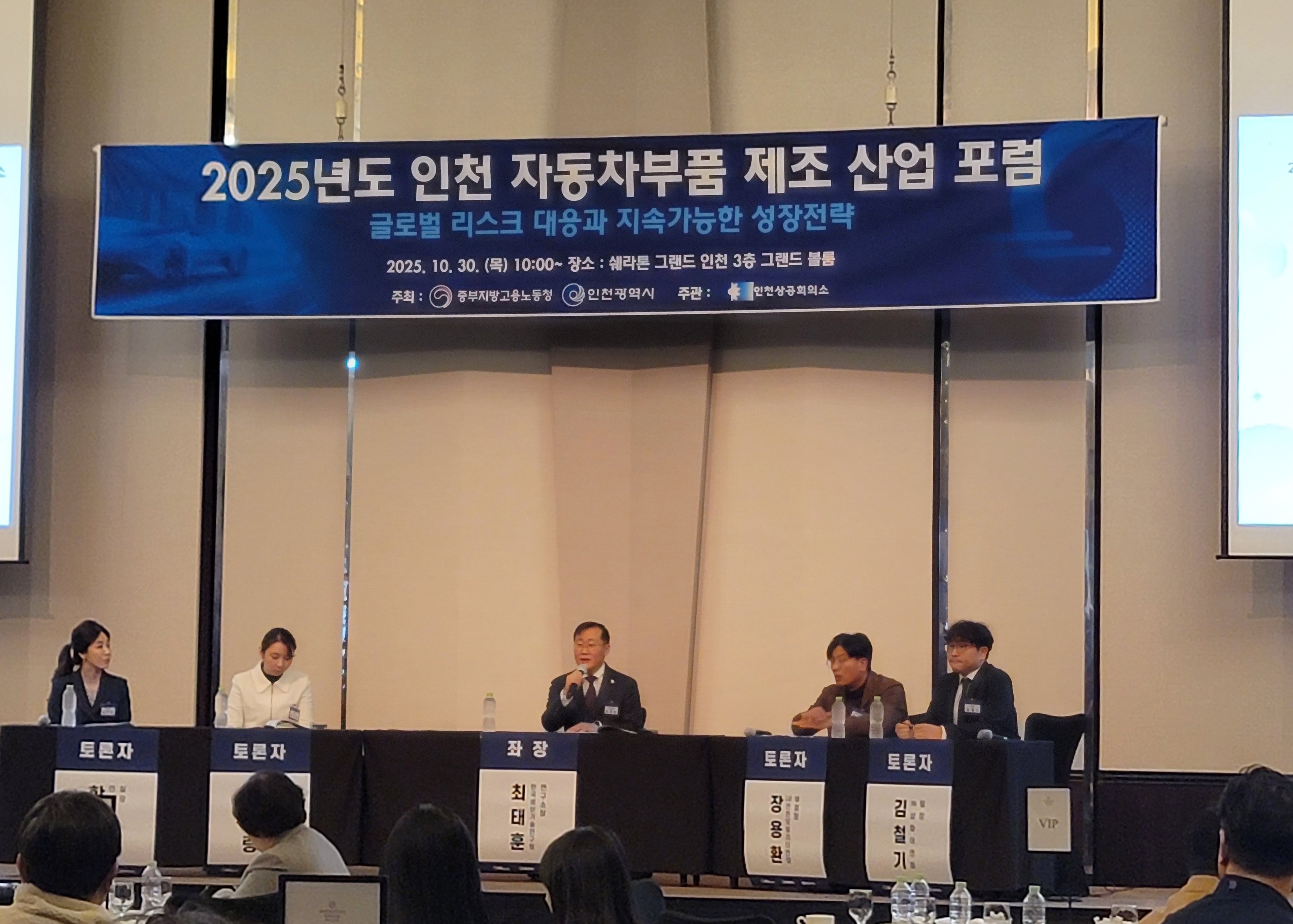 인천상공회의소(회장 박주봉)는 10월 30일, 쉐라톤 그랜드 인천 호텔 3층 그랜드볼룸에서 ‘2025년 인천 자동차부품 제조산업 포럼’(부제: 글로벌 리스크 대응과 지속가능한 성장 전략)을 성황리에 개최했다고 밝혔다. 이번 포럼은 고용노동부의 「상생협약 확산 지원사업」의 일환으로, 인천광역시가 지역 내 자동차 부품제조 산업의 활성화를 위해 추진하고 있는 사업이다. 지난해에 이어 올해도 연속 개최된 이번 행사는 인천 자동차 산업의 현황을 진단하고 미래차 전환과 글로벌 통상환경 변화에 대응하기 위한 전략적 방향을 모색하기 위해 마련됐다. 본 행사는 인천광역시와 중부지방 고용노동청이 주최하고 인천상공회의소가 주관했으며, 지역 자동차부품 제조기업 관계자, 유관기관, 학계 전문가 등 80여 명이 참석했다. 포럼은 인천상공회의소의 ‘25년도 상생협약 확산 지원사업 추진현황 보고’를 시작으로, 발제와 패널토론 순으로 진행되었다. 첫 번째 발제자인 인천연구원 민규량 연구위원은 「인천 자동차부품 제조산업 현황과 미래차 전환 대응 현황」 발제를 통해 인천 자동차부품산업의 전환 준비율이 30% 미만, R&D 수행률이 20%대에 머물고 있으며 내연기관 중심의 산업 구조와 불확실성·비용 부담 등이 전환의 걸림돌로 작용하고 있다고 분석했다. 이에 따라 정부와 지자체의 기술전환 컨설팅, R&D 지원, 인력 재교육 강화를 통한 산업 경쟁력 제고의 필요성을 강조했다. 두 번째 발제자인 관세법인 진솔의 문경진 관세사는 「미국 관세정책 동향, 대미관세 리스크관리 및 실무대응 전략」 발제를 통해 자동차 및 부품에 25%, 철강·알루미늄에 50%의 추가 관세 부과로, 대미 수출기업의 부담이 커질 것으로 전망했다. 이에 대한 대응책으로는 원산지 관리 강화, HS Code 검토, CBP 사전판정제도 활용, 공급망 다변화 등의 실무적 전략을 제시했다. 이후 진행된 좌담 및 토론에서는 한국생산기술연구원 최태훈 소장이 좌장을 맡고, 인천상공회의소 함지현 실장, (사)인천모빌리티연합 장용환 부회장(부천주물 대표이사), 인천연구원 민규량 연구위원, ㈜삼화이앤피 김철기 팀장 등이 패널로 참여하여 ‘자동차산업의 경쟁력 강화와 미래차 전환 대응’을 주제로 심도 있는 토론이 진행되었다. 토론에서는 인천 자동차부품산업이 전기차·자율주행 등 산업 전환과 대미 관세 리스크라는 이중의 도전에 직면해 있다는 점에 공감대가 형성되었다. 참석자들은 부품기업 경쟁력 강화를 위해 티어다운(부품 해체 분석) 기반 기술 역량 확보, 신소재 실증 인프라 확충, 공동 R&D 및 기술 매칭 플랫폼 구축 등의 필요성을 제안했다. 또한 직무 재교육 및 인력 재배치 지원, 지역 거버넌스 중심의 협력체계 강화, 지속가능한 산업 생태계 조성이 향후 산업 구조 전환의 핵심 과제로 제시되었다. 인천상공회의소 관계자는 “이번 포럼은 글로벌 리스크 확대 속에서 인천 자동차산업의 지속가능한 성장 방향을 함께 모색한 뜻깊은 자리였다”며 “앞으로도 인천광역시와 유관기관 간 긴밀한 협력을 통해 자동차산업의 경쟁력 강화와 상생협력 기반 확산에 적극 노력하겠다”고 밝혔다.