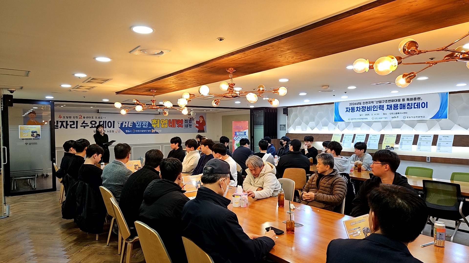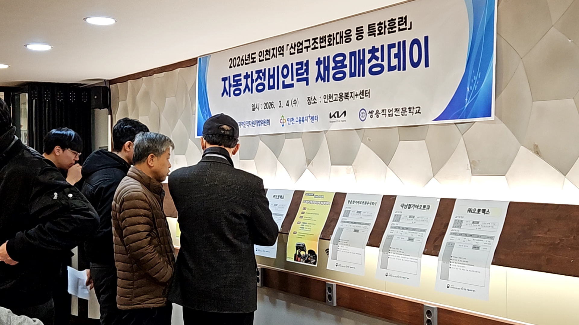 인천지역인적자원개발위원회(이하 인천인자위)는 지난 4일 인천고용복지+센터에서 고용노동부와 기아오토큐 ‘전기차 정비 인력 양성을 위한 업무협약’에 따라 개설된 전기차정비 훈련생을 대상으로 ‘자동차정비인력 채용 매칭데이’를 개최했다. 본 사업은 고용노동부와 기아오토큐의 협약과정으로 산업구조변화대응 등 특화훈련을 통해전기차 정비분야의 인력난을 해소하고 교육·채용 연계 프로그램을 통해 양질의 일자리를 창출하고자 전국 11개 훈련기관에서 282명의 훈련이 진행되었으며, 그 중 인천지역에서는 쌍용직업전문학교에서 19명의 훈련생에게 훈련이 실시되었다. 행사에는 기아오토큐 서비스센터 △동춘점 △석남점△오토맥스가 참여했으며, 기아오토큐 인천센터 협의회에서 기아오토큐 정비업체 기업설명회와 채용컨설팅이 동시에 진행되었다. 산업구조변화대응 등 특화훈련에 참여한 훈련생들을 포함하여 24명의 훈련생들이 참여하였으며 그 중 면접에 응시한 5명 모두 1차 합격 소식을 받았다. 참여기업 관계자는 훈련을 통해 기본기를 갖춘 인재들을 한자리에서 만날 수 있어 효율적이었다며 만족감을 표했으며, 구직자들 또한 훈련 직후 곧바로 취업 기회를 잡을 수 있어 동기부여가 된다고 소감을 밝혔다. 인천인자위는 앞으로도 친환경 모빌리티 시대를 이끌어 갈 핵심 인재를 체계적으로 육성하고, 지속가능한 미래 자동차 산업의 인재를 육성할 수 있도록 적극지원할 계획임을 전했다. 한편, 친 친환경차 정비인력 양성과정의 2회차 훈련은 6월 개강 예정이며 해당 교육에 관한 자세한 사항은 쌍용직업전문학교 홈페이지에서 확인할 수 있다. 별 첨 : 행사사진 2매. 끝. |