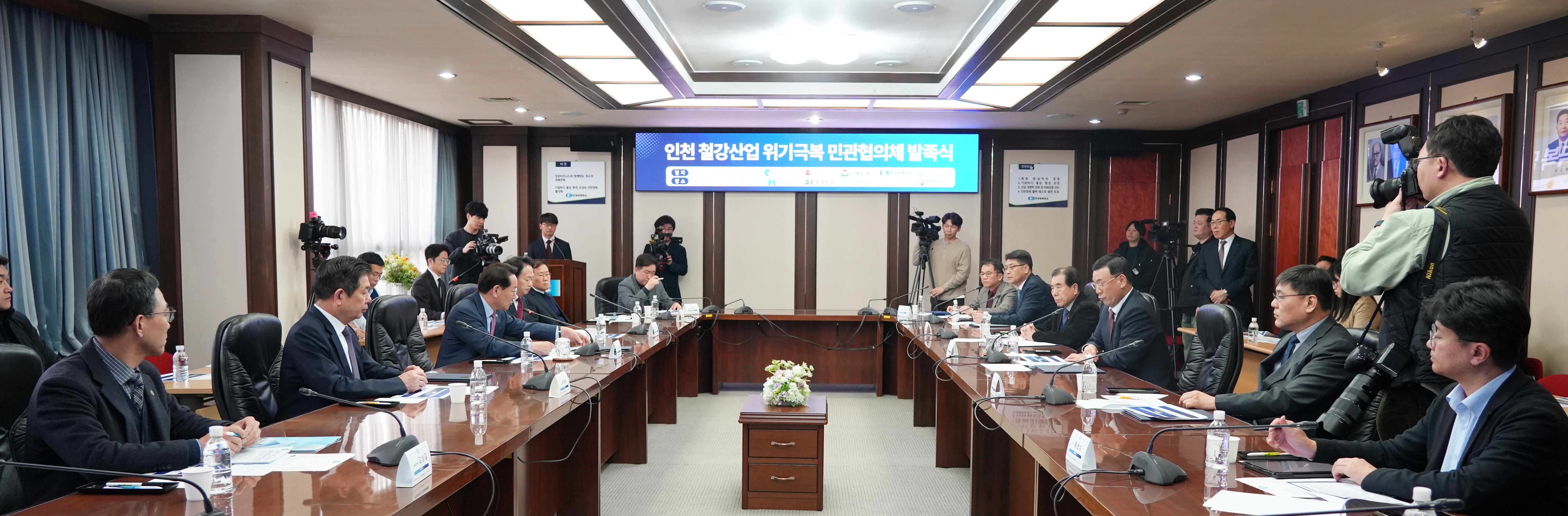 인천상공회의소와 인천광역시는 11일 지역경제의 기반인 철강산업 위기에 선제적으로 대응하기 위해 철강기업 및 유관기관과 함께 ‘인천 철강산업 위기극복 민관협의체’를 출범하였다. 발족식에는 유정복 인천광역시장, 박주봉 인천상공회의소 회장, 김찬진 인천광역시 동구청장, 강국창 인천지역인적자원개발위원회 공동위원장, 이성재 현대제철㈜ 인천공장장, 이찬희 동국제강㈜ 인천공장장, 최계운 인천연구원장, 최태훈 한국생산기술연구원 지능화뿌리기술연구소장, 허제도 인천테크노파크 기업지원본부장 등이 참석했다. 발족식에서는 민관협의체 추진 방향, 철강산업 회복을 위한 실질적인 협력 방안을 논의하였으며, 참여기업·기관이 함께 ‘인천 철강산업 위기극복 및 지역경제 활성화를 위한 공동선언문’을 발표했다.
