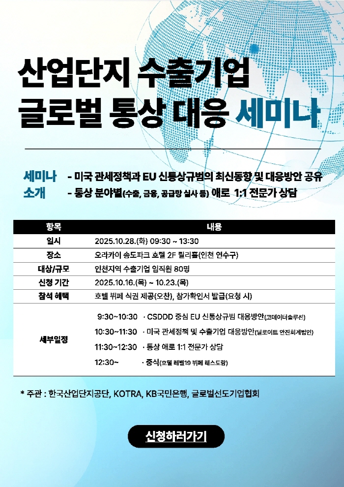 ‒ | [한국산업단지공단]산업단지 수출기업 글로벌 통상 대응 세미나 안내 |