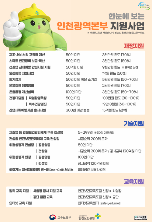 | ‒ | [안전보건공단 인천지역본부] 2026 안전일터 조성을 위한 보조금 지원 사업 |