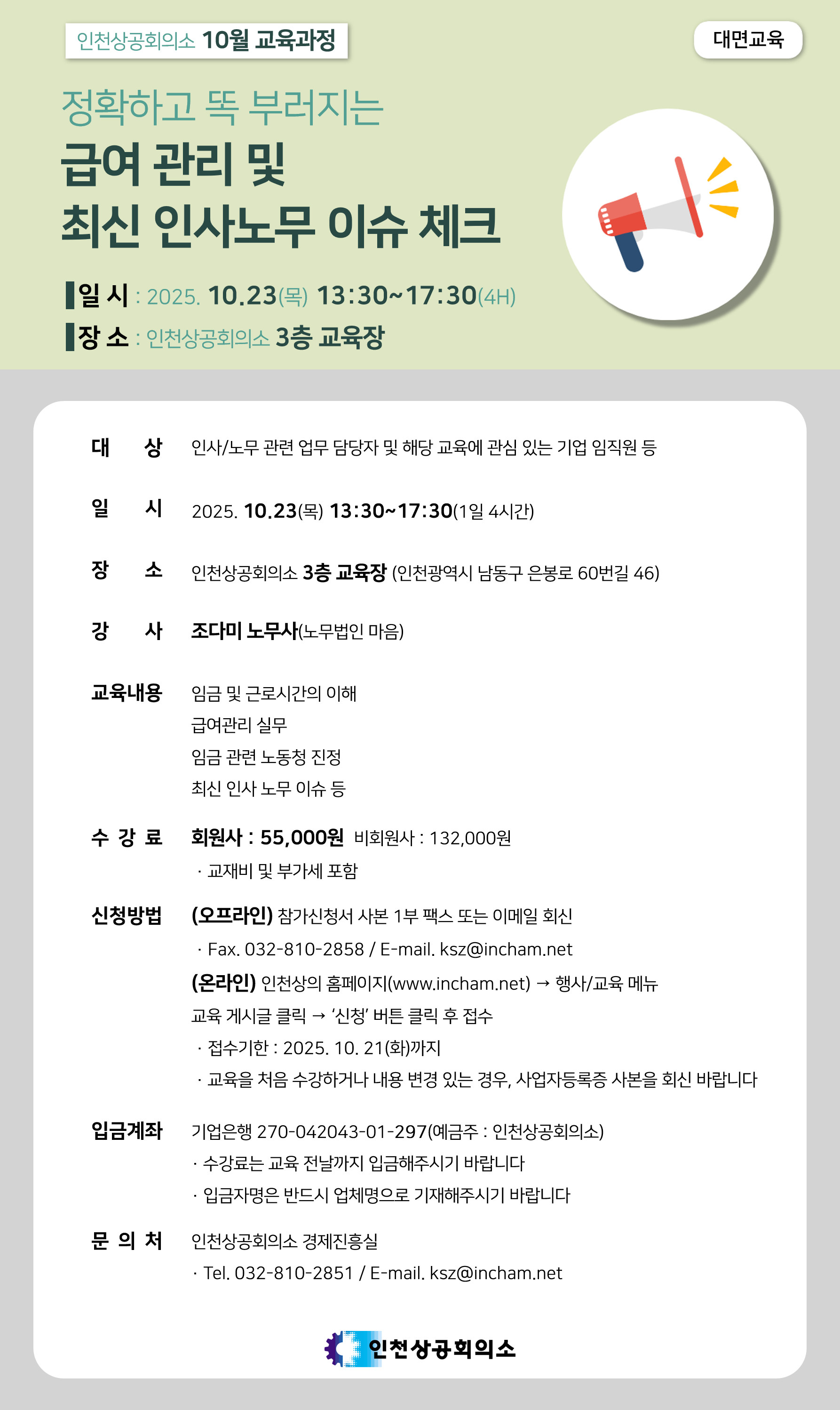 대표전화 : 032-810-2800~3, 팩스번호 032-810-2807 문의 : inchon@korcham.net