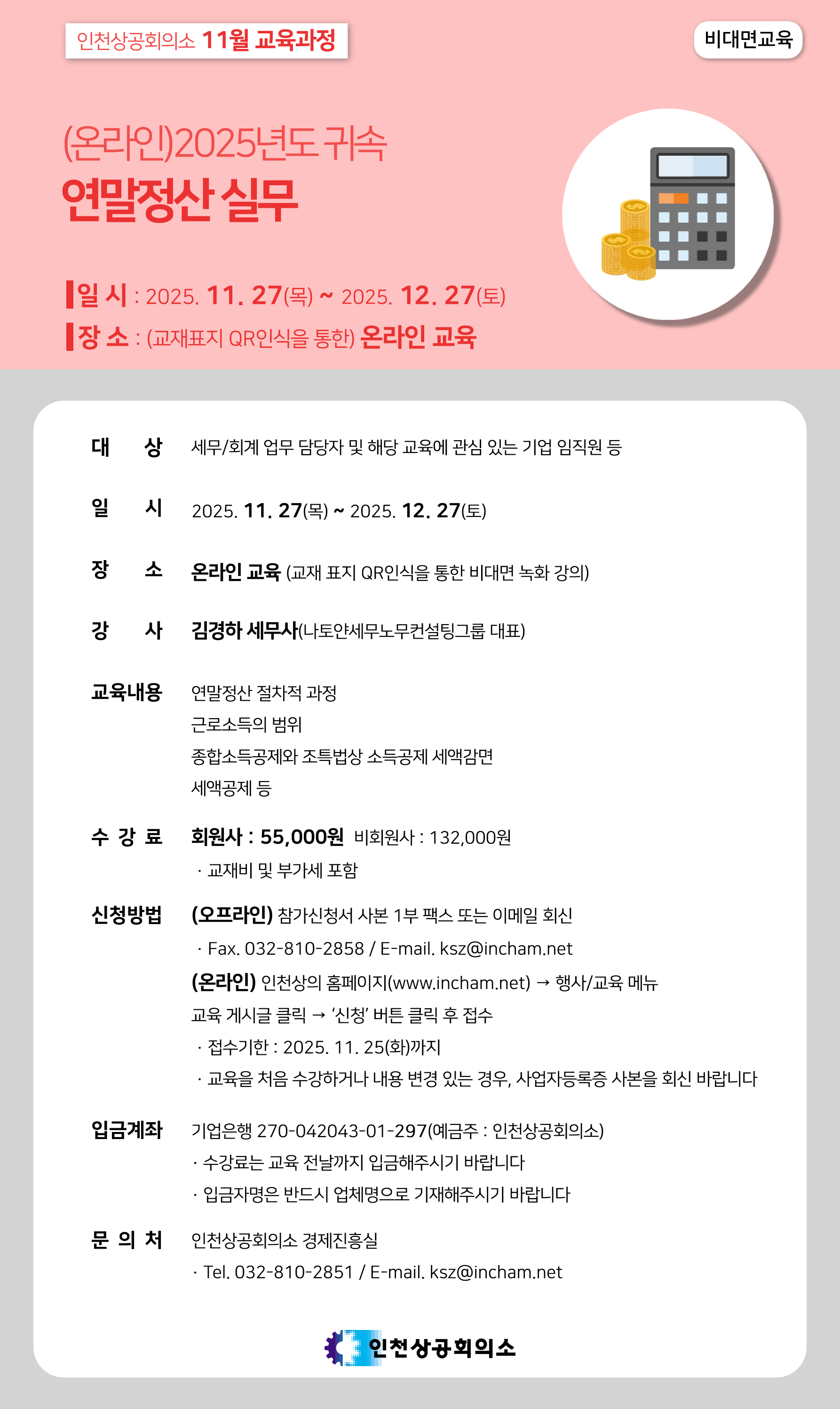 | ‒ | (온라인) 2025년도 귀속 연말정산 실무교육 |