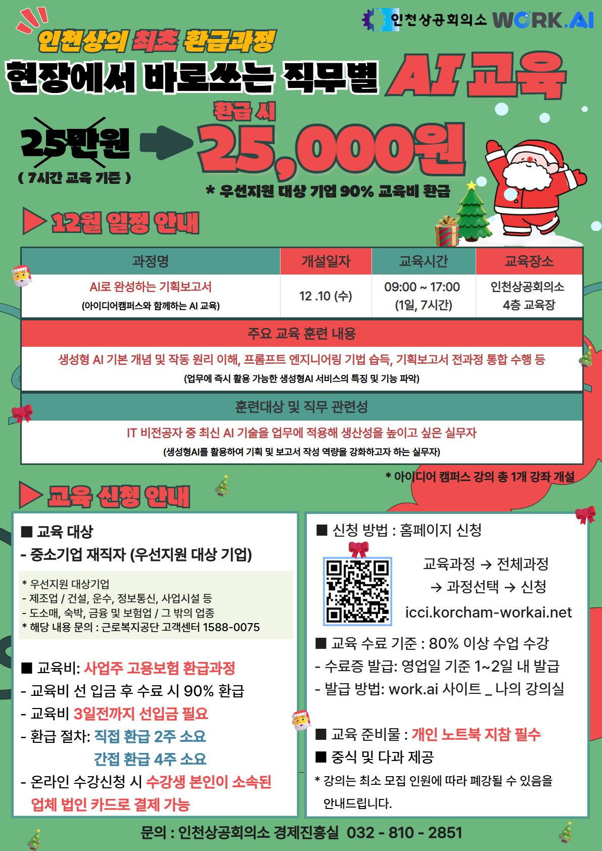| ‒ | [인천상공회의소] 2025년도 12월 대한상공회의소 공동 AI 교육 (*우선기업 대상 90% 환급 진행!) |