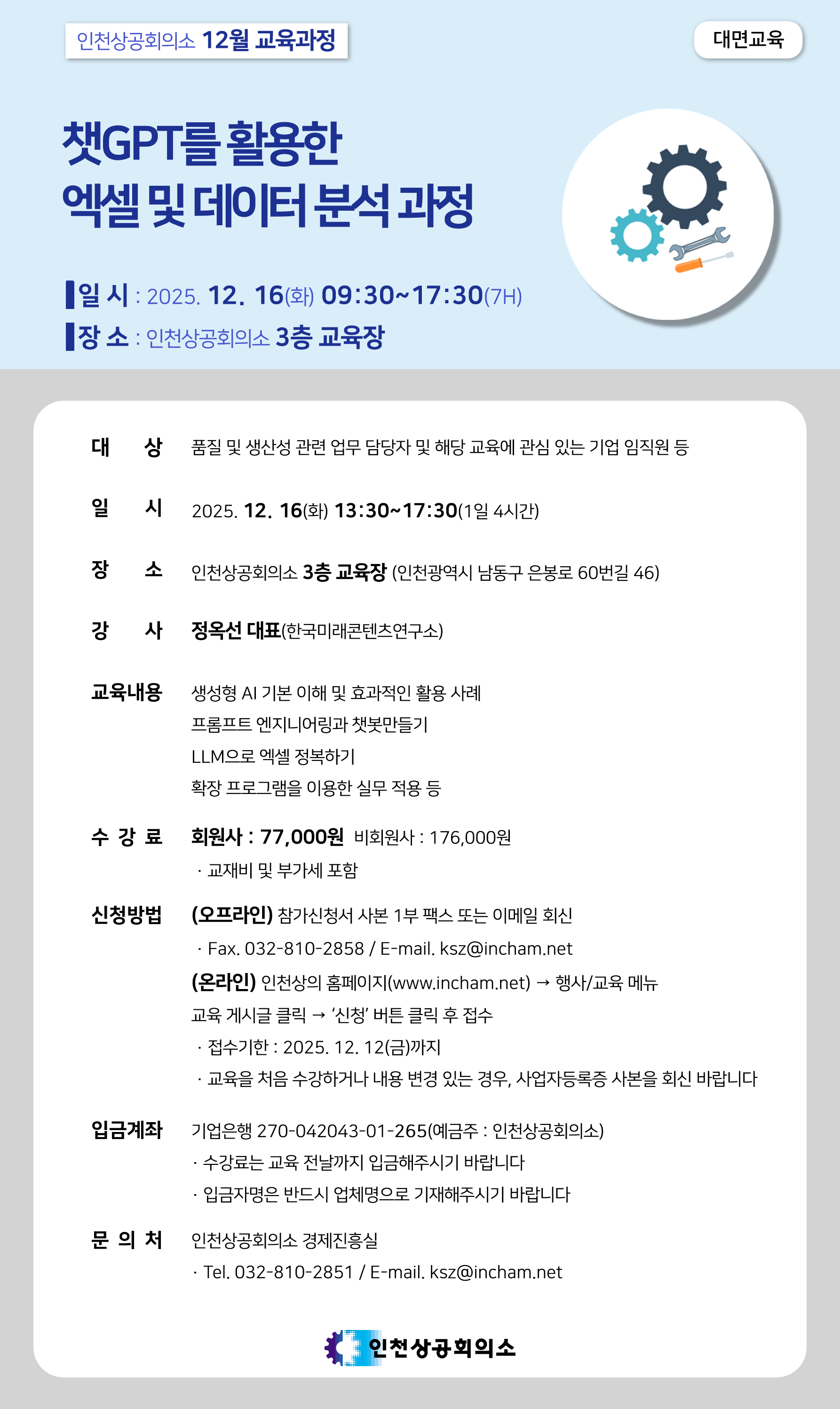대표전화 : 032-810-2800~3, 팩스번호 032-810-2807 문의 : inchon@korcham.net