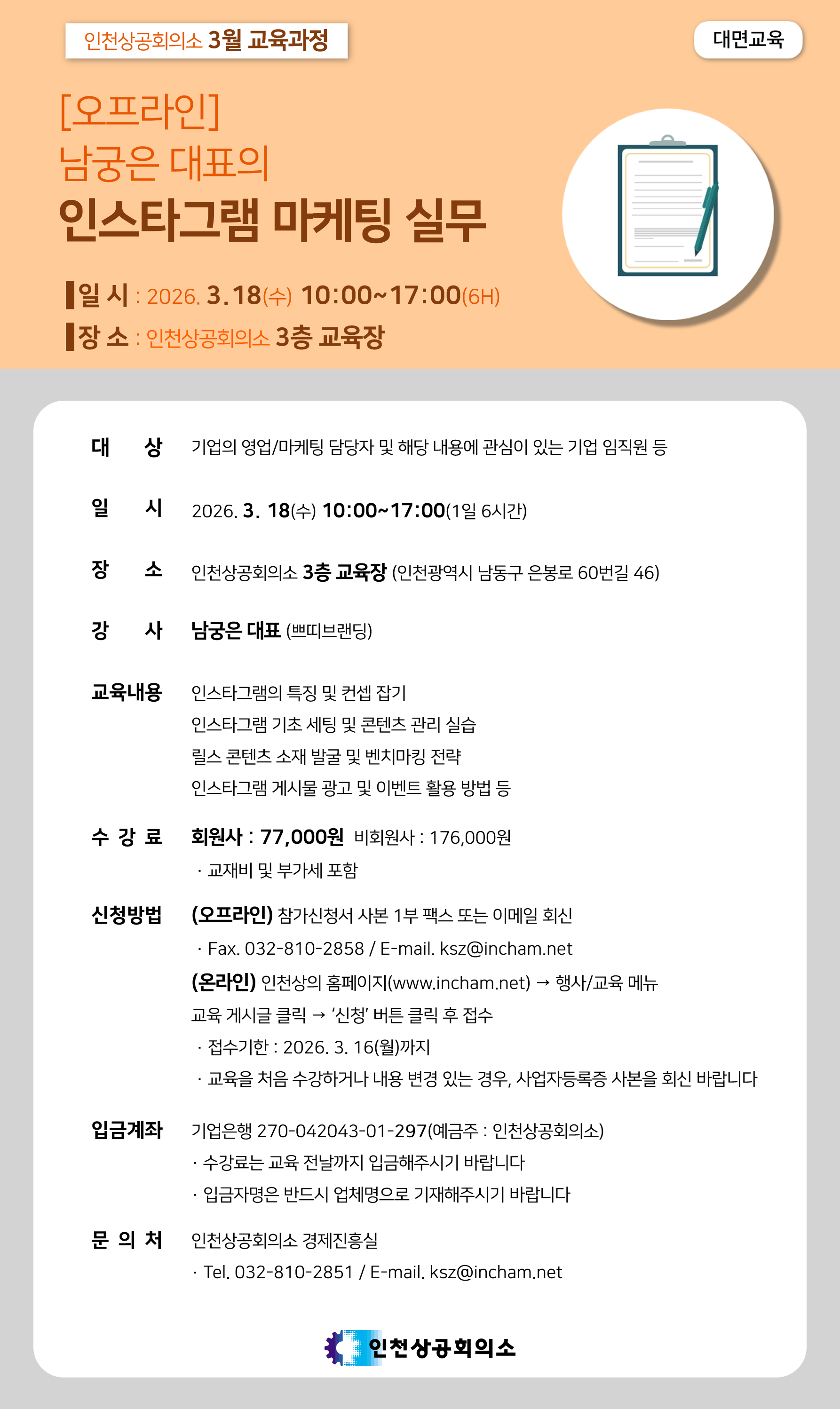 대표전화 : 032-810-2800~3, 팩스번호 032-810-2807 문의 : inchon@korcham.net
