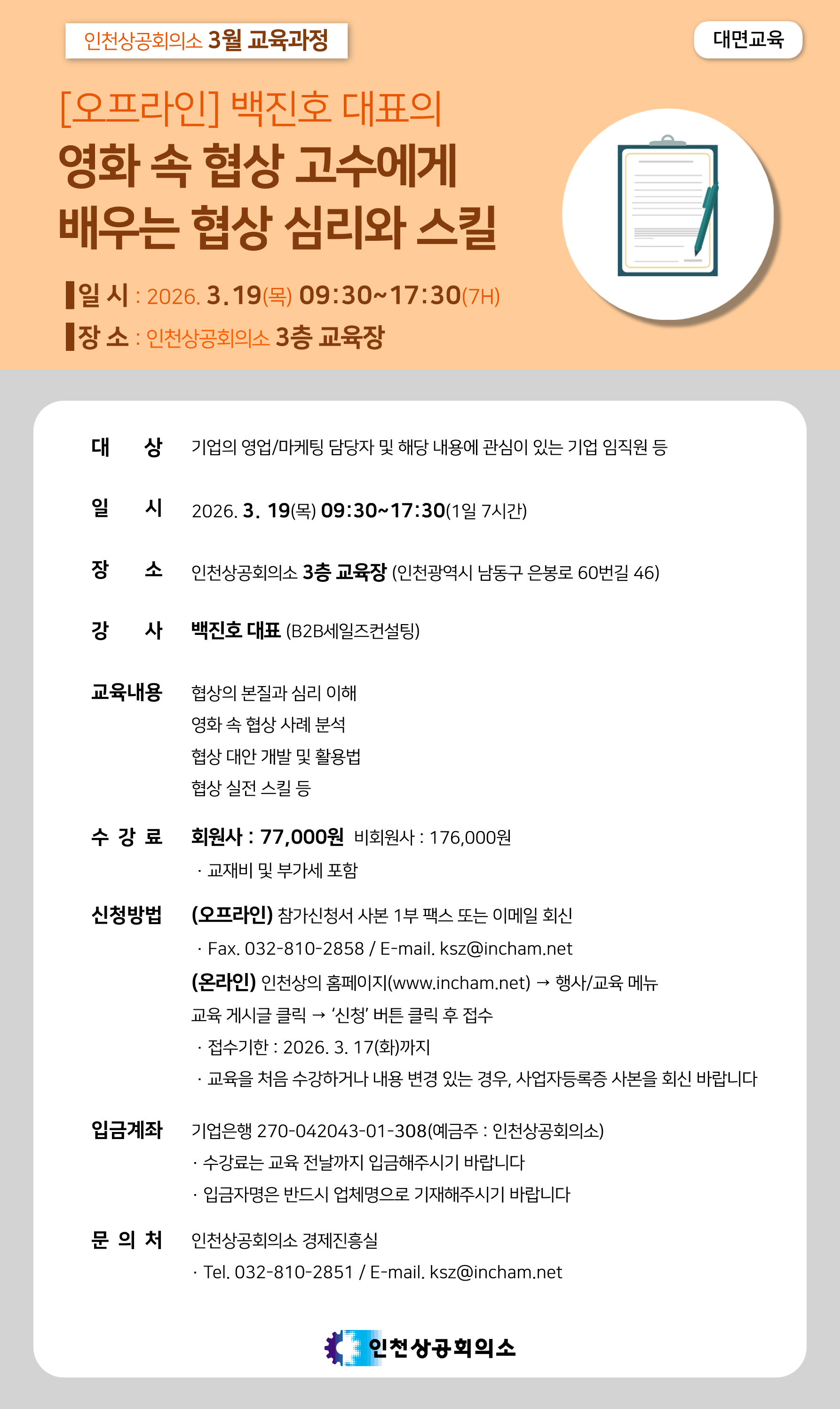 대표전화 : 032-810-2800~3, 팩스번호 032-810-2807 문의 : inchon@korcham.net