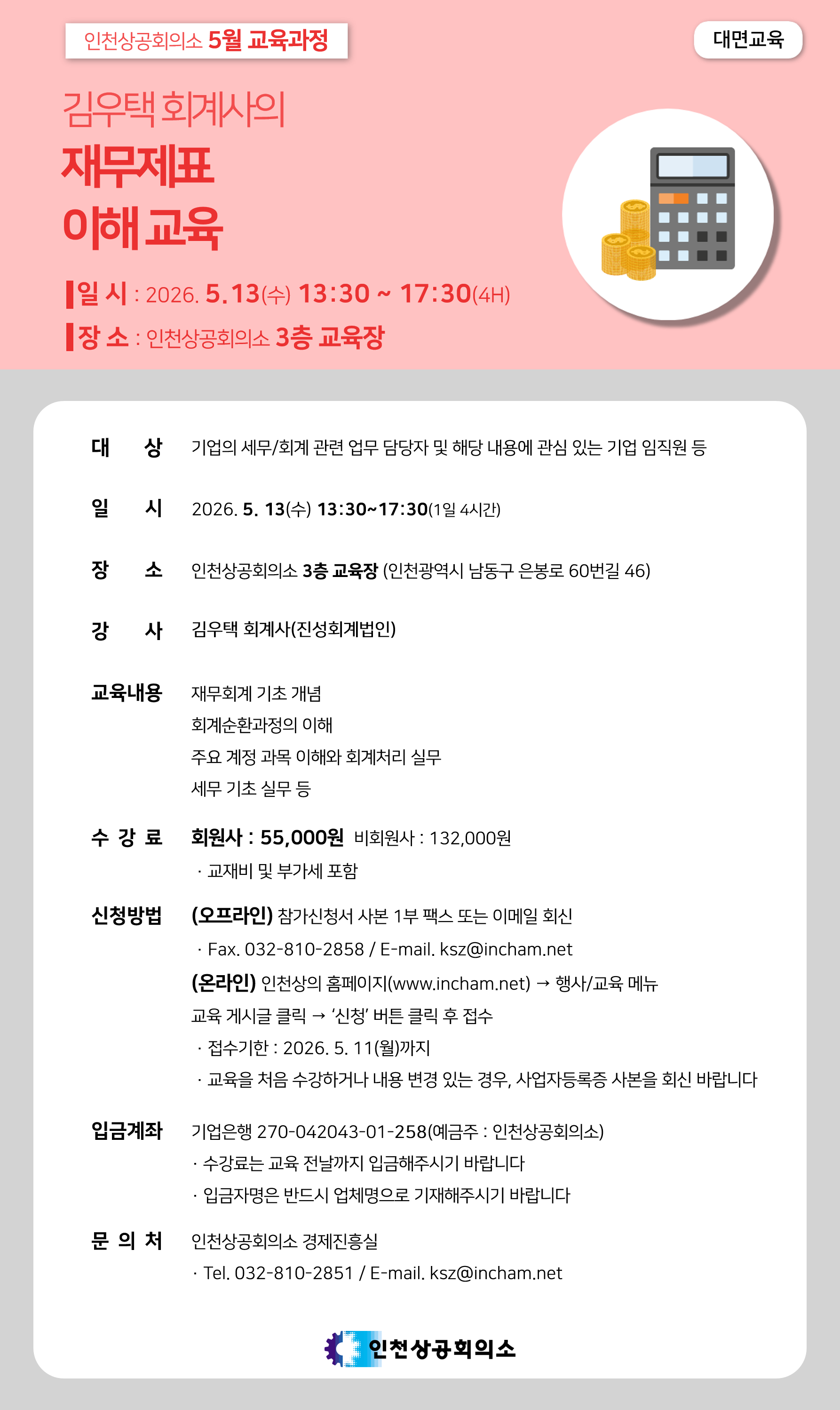 대표전화 : 032-810-2800~3, 팩스번호 032-810-2807 문의 : inchon@korcham.net