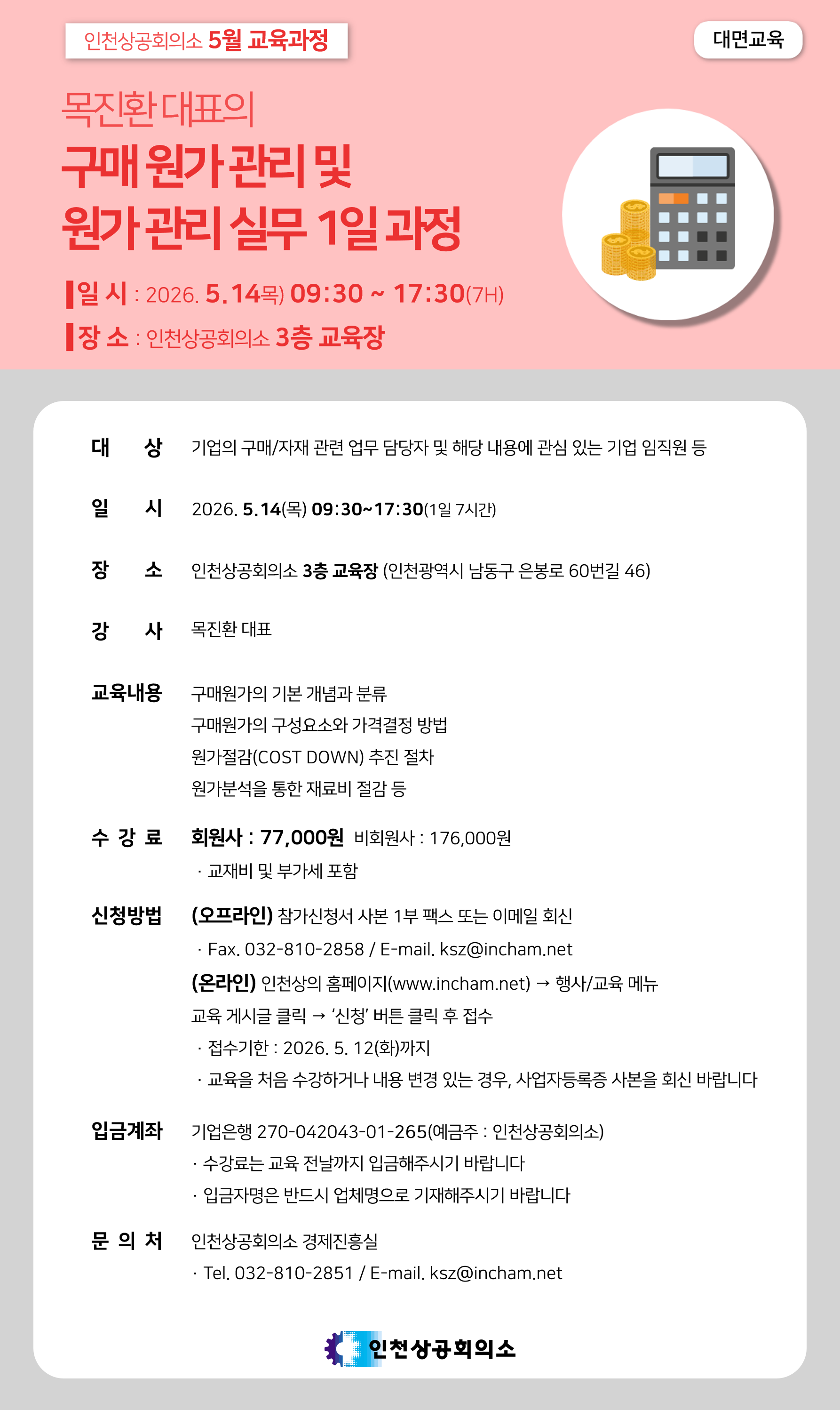 대표전화 : 032-810-2800~3, 팩스번호 032-810-2807 문의 : inchon@korcham.net