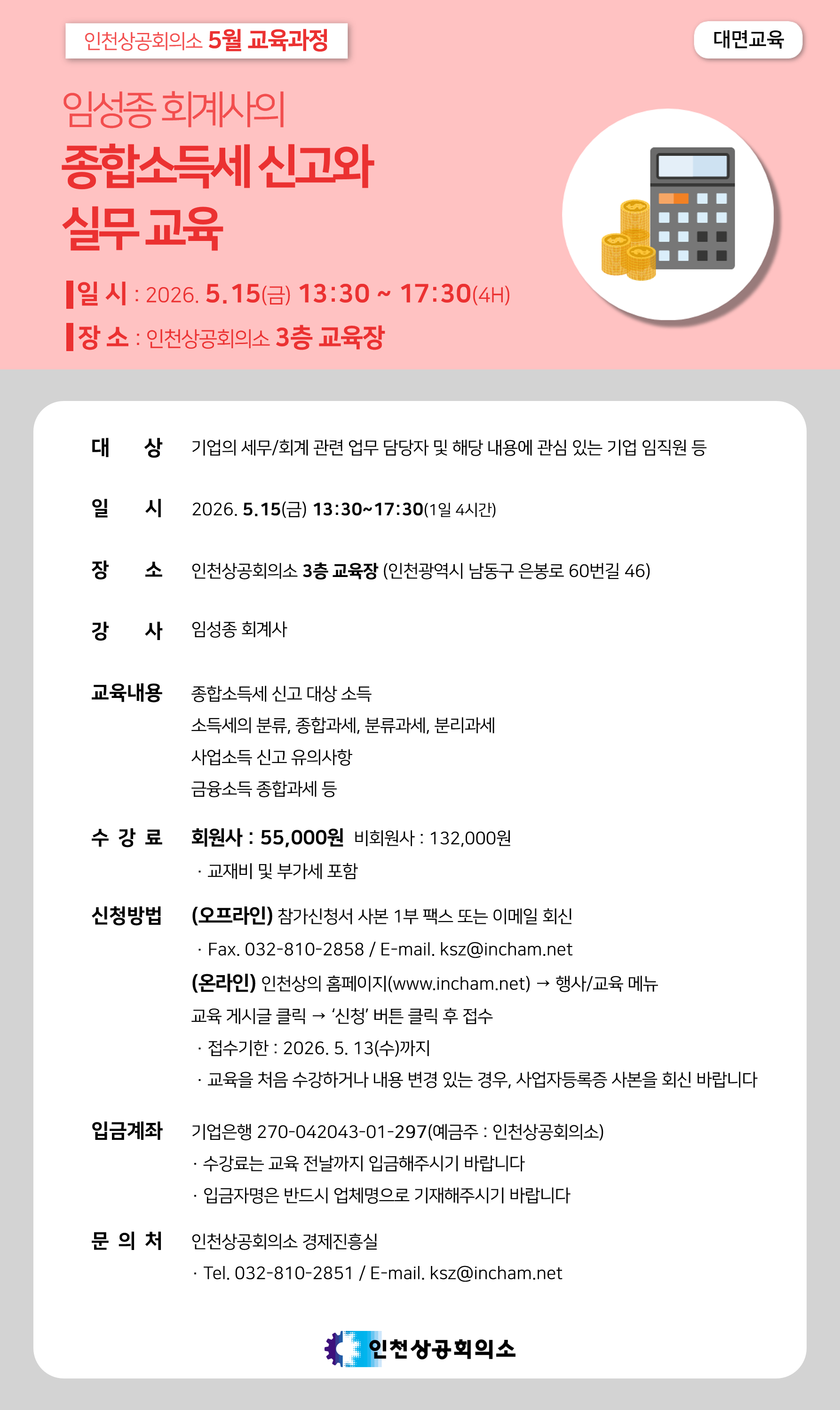 대표전화 : 032-810-2800~3, 팩스번호 032-810-2807 문의 : inchon@korcham.net
